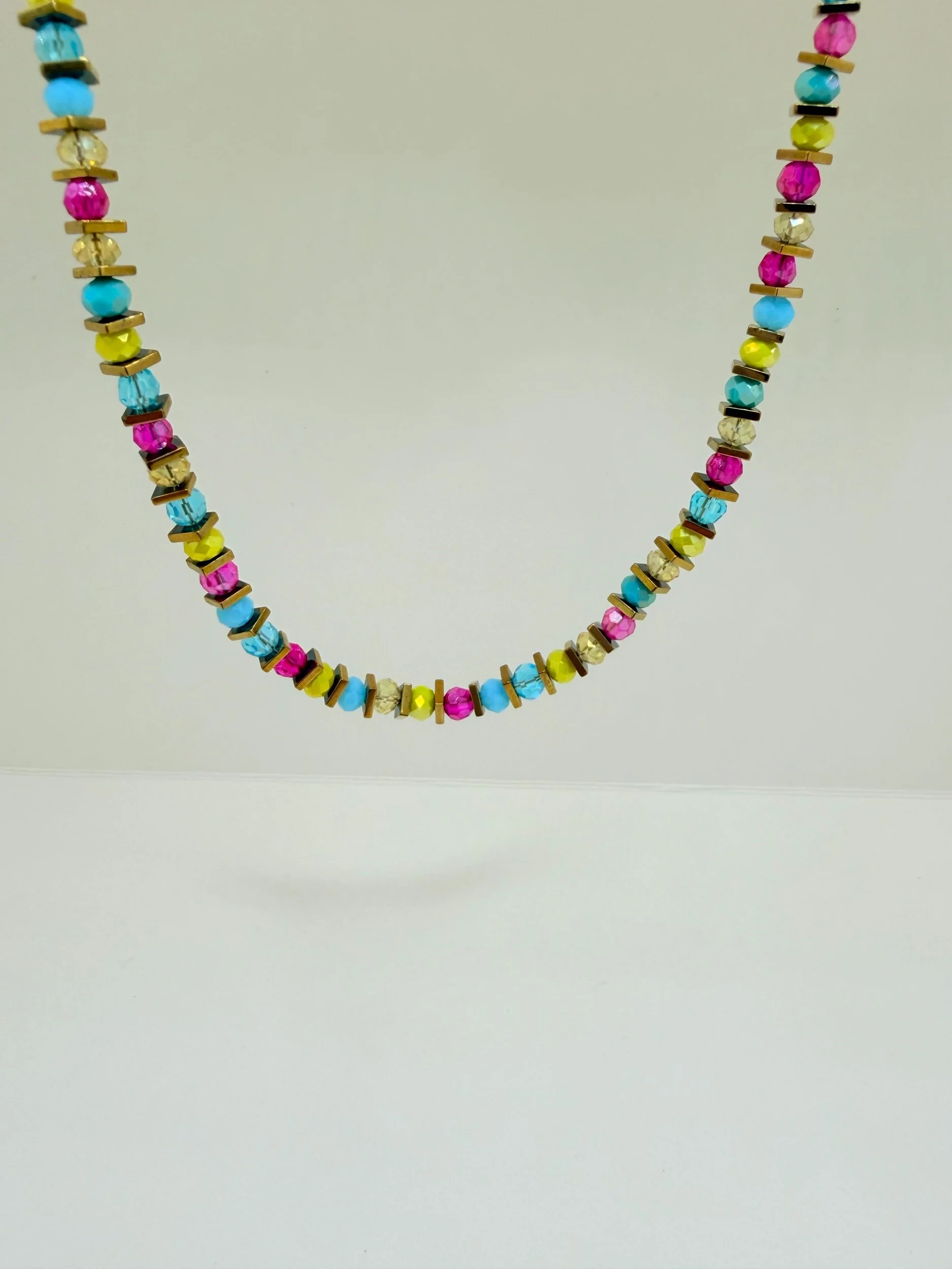 Meet the piece that levels up your stack: this half-sparkle, half-color necklace is the perfect balance of playful and polished. Designed to add a pop of color to your gold stack while still bringing just the right amount of shine. Finished with a gold-plated magnetic clasp for effortless wear, this necklace is made to snap on, stand out, and become your new everyday (and game day) favorite.